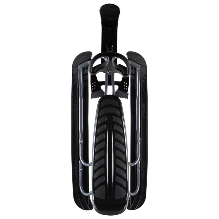 Il più recente modello Snowracer (slitta da corsa con volante), adatto agli adulti. Il sellino rialzato ed allungato dà abbastanza spazio ad un adulto con bambino. Snowracer (slitta da corsa con volante) ultima generazione a sistema “Curva Sci” per un’ottima maneggevolezza e “Twin Tip”, per poter slittare anche all’indietro. Dotato di freno ABS (a sistema anti bloccaggio), volante a più punti di presa, ammortizzatore nello sci anteriore, un automatico avvolgitore di corda e sterzo a molla, per agevolare la slitta – in caso di caduta – a frenare. Adatto a bambini dai 10 anni in poi. Dimensioni: 150 x 55 x 37 cm. Peso 11 kg.